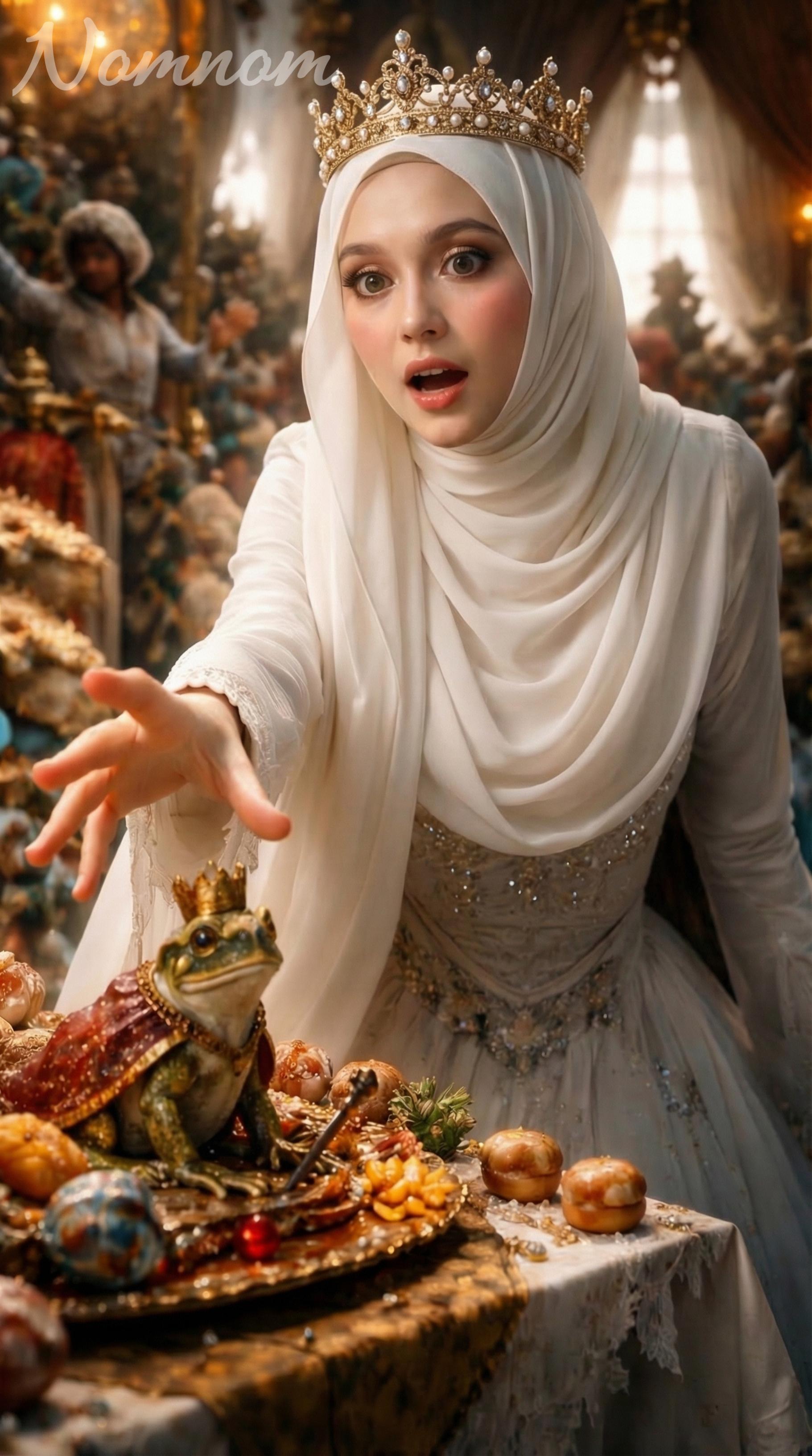 #prompter #historical #massivetiger #AiimagenotrealMassive prehistoric sabertooth tiger 🐯 Prompt 📌 Ultra hyper–realistic cinematic fantasy portrait photography, extreme photorealism, true human realism, 100% exact facial identity from reference image (CHARACTER LOCK MANDATORY — face must match reference exactly with zero alteration), young beautiful woman, fair clean skin, slim body, height ~160cm, natural proportions, highly detailed realistic skin texture with visible pores, subtle imperfections, soft peach fuzz, accurate subsurface scattering. Woman wearing fully modest Islamic outfit adapted to ancient fantasy era, long layered robe with intricate woven textures, natural earth-tone fabrics, slightly weathered but elegant, realistic cloth physics, historically inspired modest clothing, no skin exposure except face and hands. Wearing hijab identical to reference image (exact color, folds, texture, and wrapping style, fully covering hair and neck). Accessories: wedding ring with diamond gemstone (ultra detailed reflections, physically accurate light refraction),(sharp engraving, reflective surface, subtle wear details). Pose: sitting firmly on top of a massive prehistoric sabertooth tiger, hands gripping its fur, strong calm expression, intense gaze downward, wind gently moving fabric and hijab. Creature: ultra-detailed giant sabertooth tiger (Smilodon style), massive fangs, sharp teeth, realistic wet nose, detailed fur with frost and snow particles, visible breath condensation, cinematic animal realism. Environment: frozen mountain landscape, heavy snow atmosphere, soft falling snowflakes, misty cold air, depth fog, dramatic winter environment, icy ground with subtle reflections. Lighting: cinematic natural lighting, soft diffused overcast light, HDR dynamic range, global illumination, realistic shadows, volumetric lighting, subtle rim light outlining subject and creature, light scattering through snow particles. Camera: Full-frame mirrorless camera, 85mm lens, f/1.8 aperture, ISO 100, shutter speed 1/1000s, shallow depth of field, sharp focus on subject and tiger face, creamy bokeh background, professional composition, cinematic framing. Quality: 8K UHD resolution, ultra high detail, sharp focus, hyper realistic textures, physically based rendering (PBR), ray tracing lighting, no CGI look, no cartoon effect, true-to-life realism. Aspect Ratio: 9:16 vertical composition 🚫 NEGATIVE PROMPT low quality, blurry, soft focus, out of focus, low resolution, jpeg artifacts, oversharpen, noise, grain, cartoon, anime, illustration, CGI, 3D render look, unrealistic skin, plastic skin, waxy face, overexposed, underexposed, bad lighting, flat lighting, distorted face, altered face, different face, wrong identity, extra limbs, extra fingers, mutated hands, bad anatomy, bad proportions, deformed body, unrealistic clothing, modern clothing, revealing outfit, tight clothes, transparent fabric, messy hijab, incorrect hijab, uncovered hair, text errors, misspelled necklace engraving, watermark, logo #prompter #historical #massivetiger #Aiimagenotreal0 Komentar 0 Bagikan 1240 Tampilan