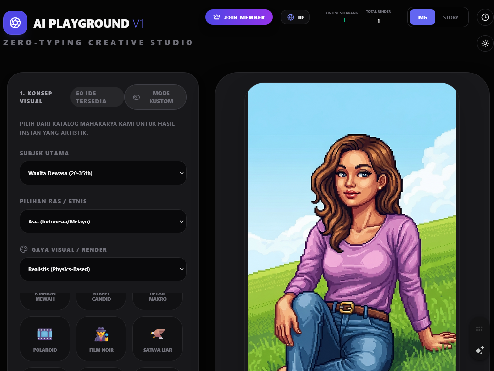 • Ramah Pengguna Indonesia: Antarmuka tersedia dalam Bahasa Indonesia dengan pilihan subjek lokal (seperti wanita berhijab atau etnis Melayu/Asia) yang akurat.