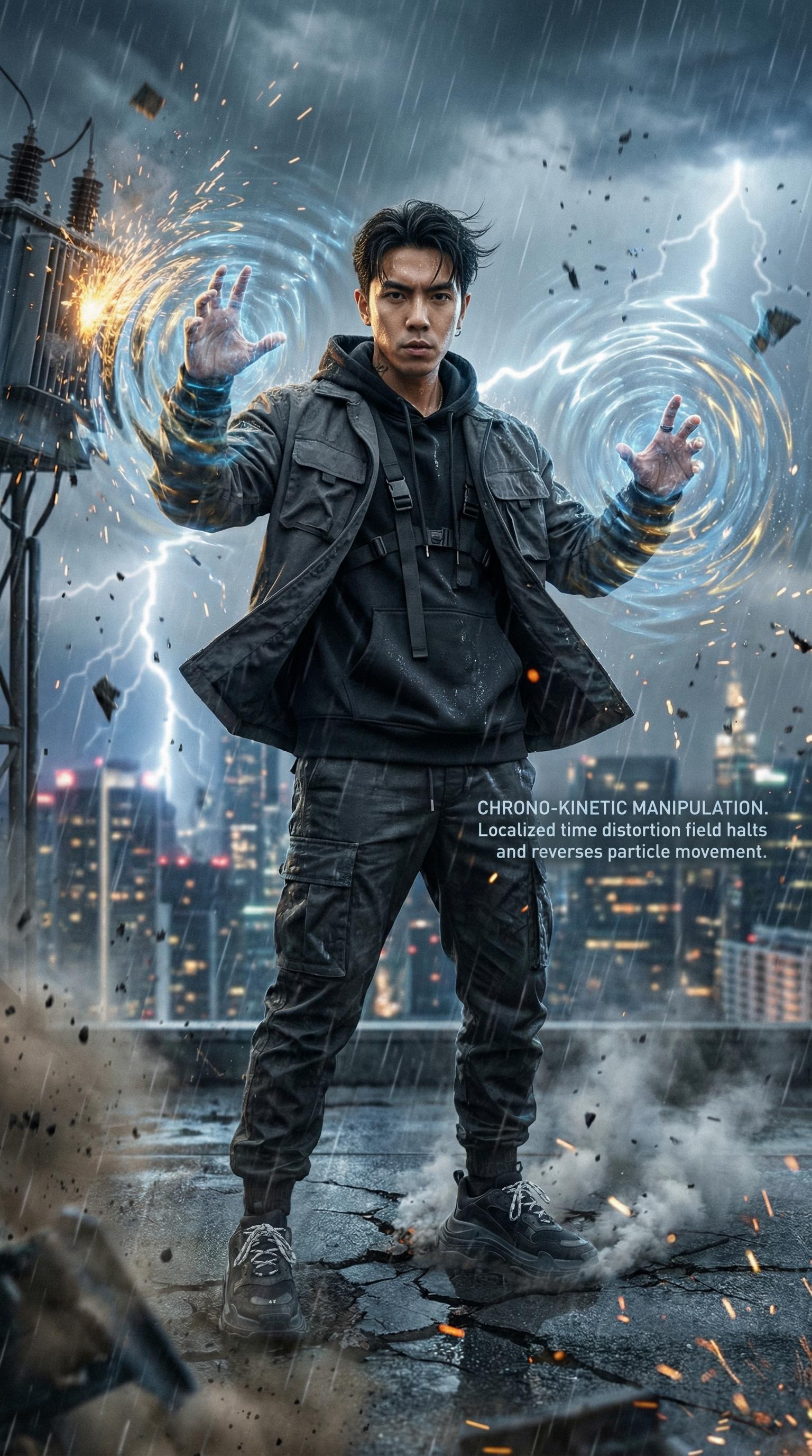 #AIArt #CyberpunkStyle #Techwear #ChronoKinetic #Supernatural #DigitalArt #SciFiVibes #VisualEffects #TimeManipulation #FutureCore #UrbanFantasy #AIArtist